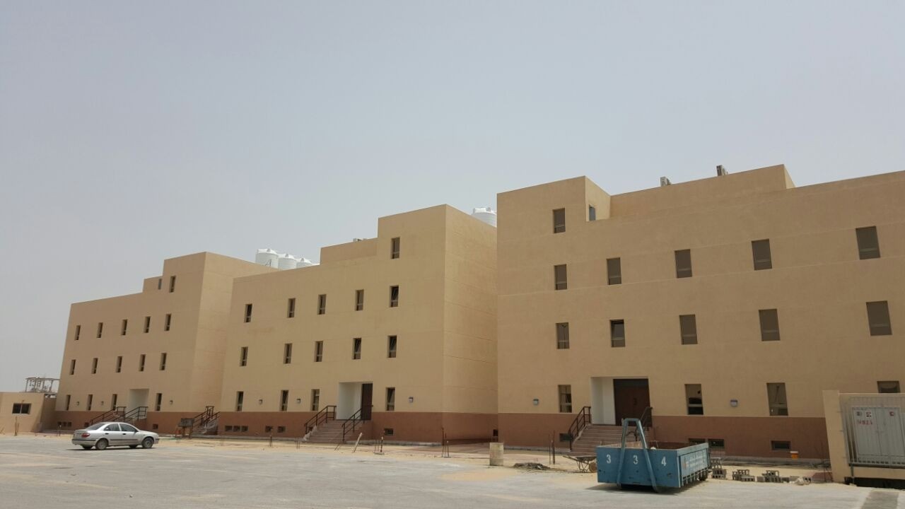 المشروع مكون من 3 عمائر سكنية منفصلة كل عمارة مكونة من بدروم 4 طوابق وملحق والطابق مكون 30 غرفة تسعى كل غرفة 4 اشخاص مساحة المبانى للمشروع